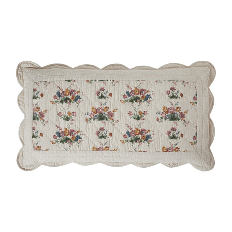 Rosehill Cottage Blue Block Print Ruffled Lumbar Pillow - 14x22 Filled Botanical Decorative Cushion