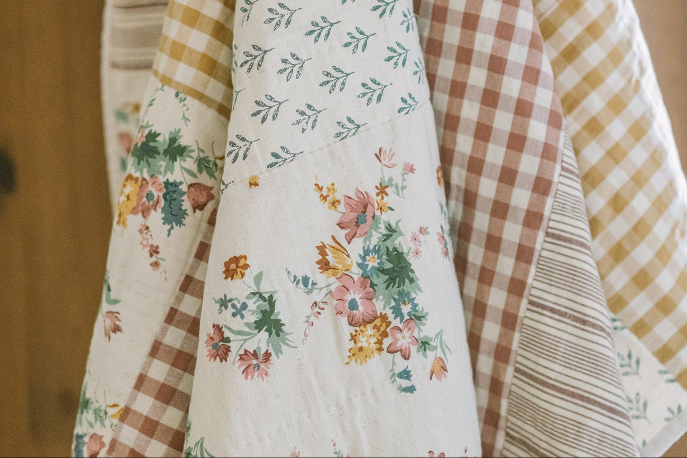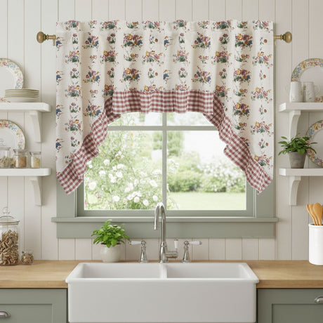Rosehill Cottage Floral & Gingham Ruffled Cotton Curtain Panel Set
