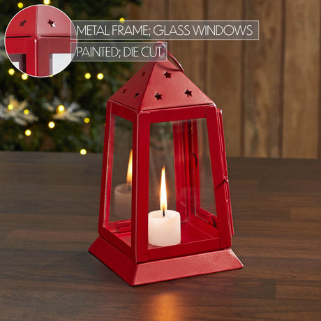 Metal Lantern Barn Red Tealight Holder 7x4.5x4.5