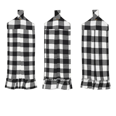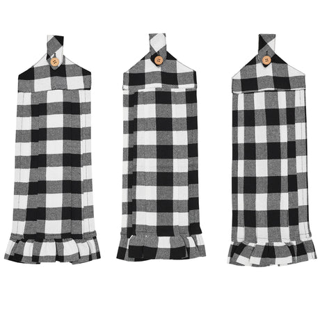 Annie Buffalo Check Black Button Loop Tea Towel Set of 3