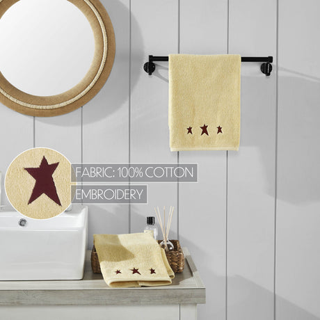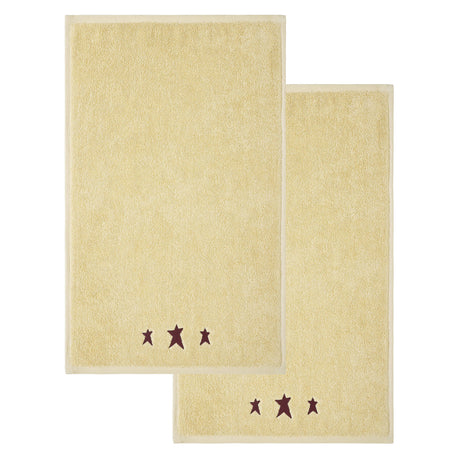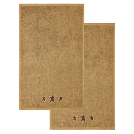 Burgundy Prim Stars Tan Hand Towel Set of 2 16x26