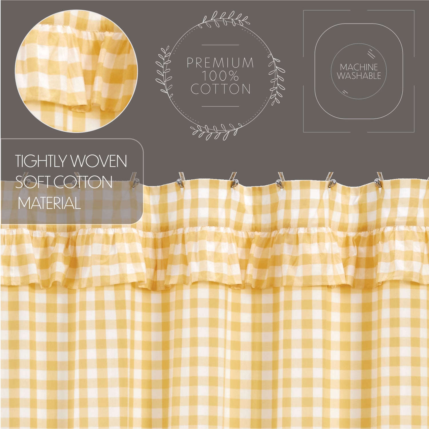Decorate your bathroom with the perfect blend of simplicity and country charm with the Annie Buffalo Yellow Check Ruffled Check Shower Curtain. Featuring large scale golden yellow and white checks beautifully accented with ruffles, our 72x72 fabric shower curtain provides a vintage, farmhouse touch to your decor. This machine washable, 100% cotton shower curtain includes button holes for shower hooks and a rod pocket for versatility and convenience.