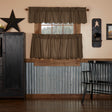 Add classic farmhouse style to your windows with the VHC Brands Black Check 3 PC Curtain Set in Raven. Crafted from 100% cotton, this set includes 1 valance (16x72) and 2 tier curtains (24x36) in a bold black check pattern, bringing cozy rustic charm to kitchens, bathrooms, or any room.