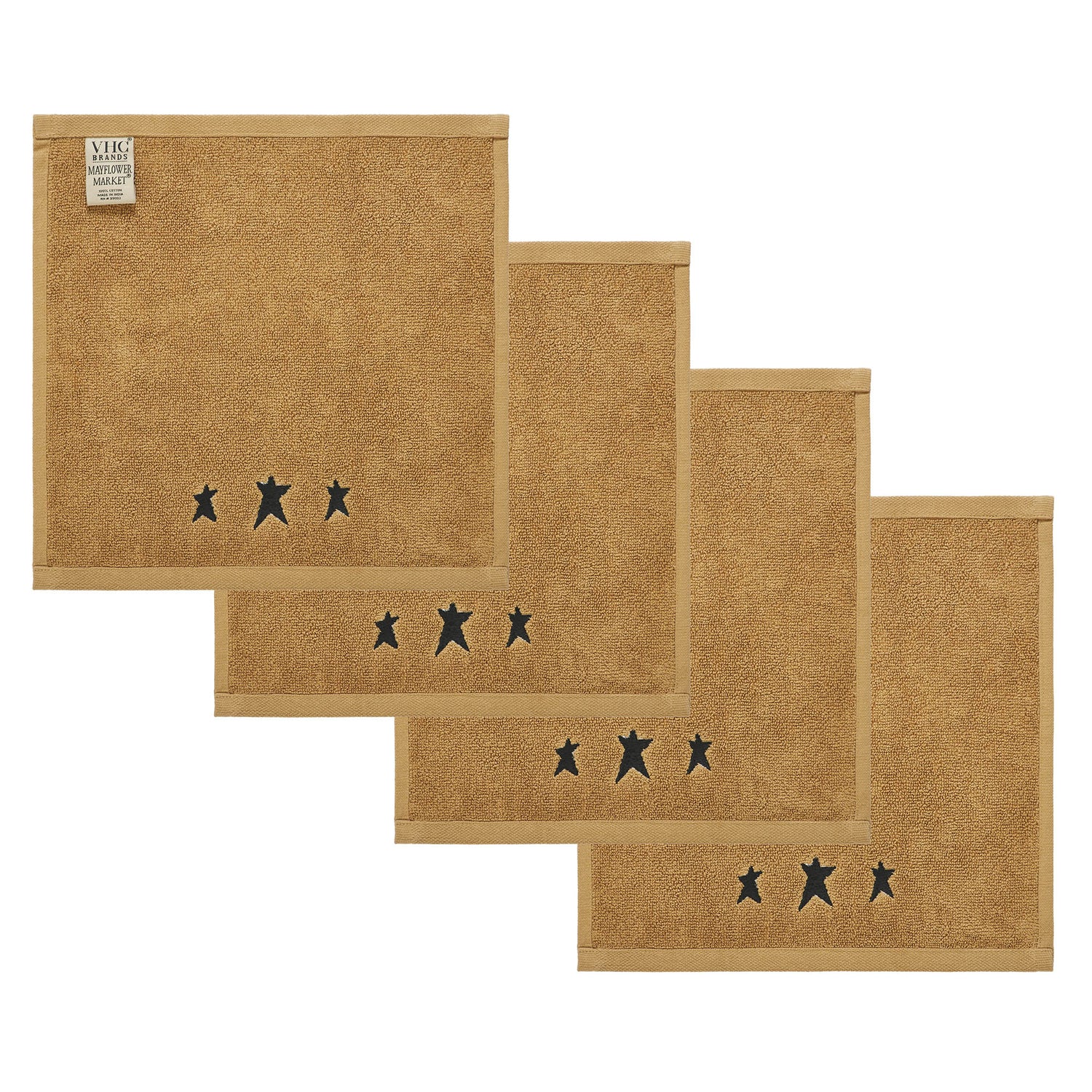 Add a rustic touch to your bathroom with the VHC Brands Black Prim Stars Tan Washcloth Set of 4. These 12x12 washcloths are made from soft and absorbent cotton terrycloth, providing comfort and functionality for daily use. The neutral doe tan color offers a warm, inviting backdrop, while the embroidered design at the bottom showcases three primitive stars in rustic black, creating a classic, country-inspired accent. These washcloths are perfect for everyday tasks like face washing or adding a decorative element to a primitive-themed bathroom. The primitive star design enhances the rustic aesthetic of any washroom, making them a perfect fit for a farmhouse or country-style decor. Their soft yet durable texture ensures long-lasting quality and comfort, combining practicality with a timeless design. Machine washable for easy care, the VHC Brands Black Prim Stars Tan Washcloth Set offers both style and utility. Whether you're refreshing your bathroom essentials or looking to add a decorative touch, these washcloths provide the perfect blend of rustic charm and everyday convenience, making them a must-have for any primitive or country-inspired home.