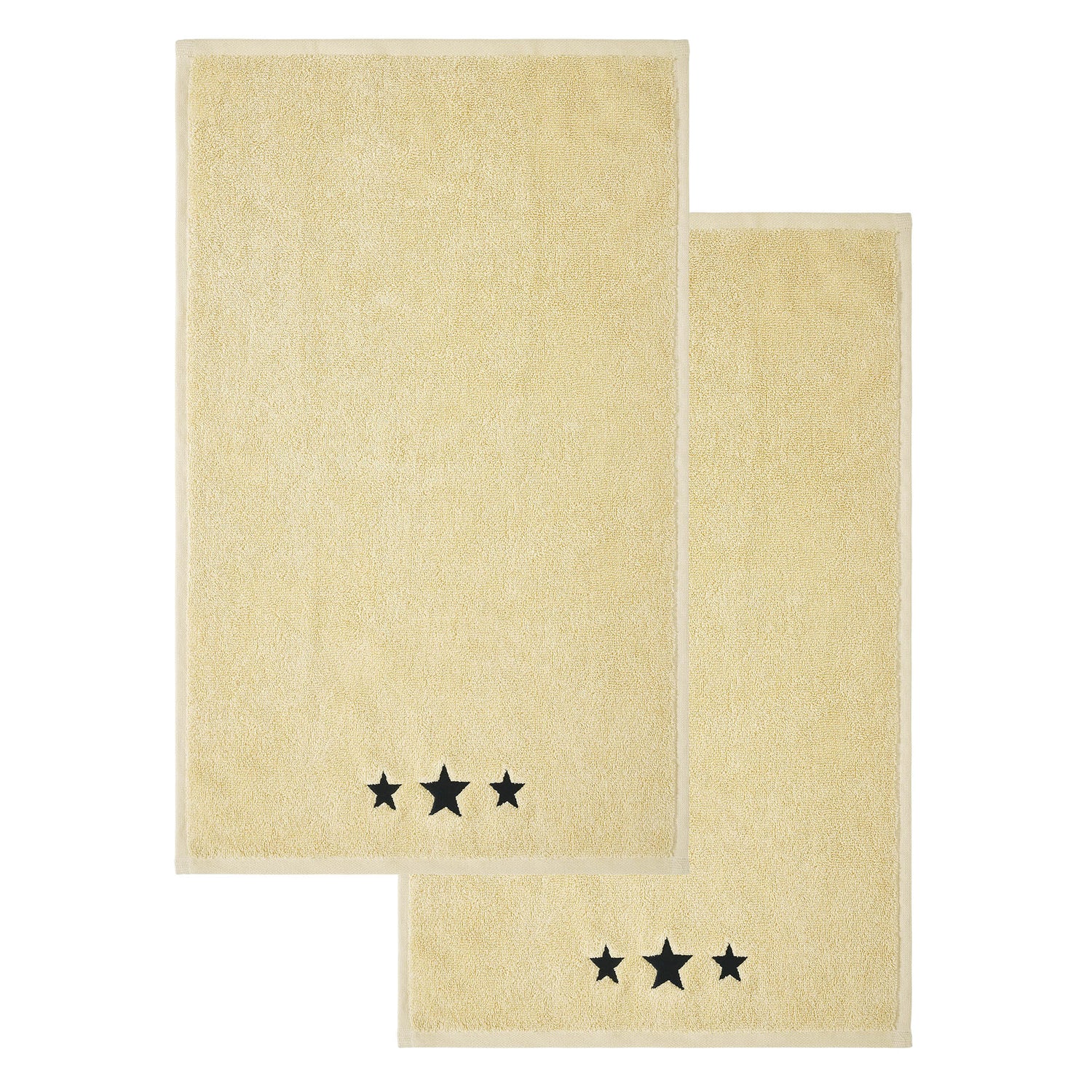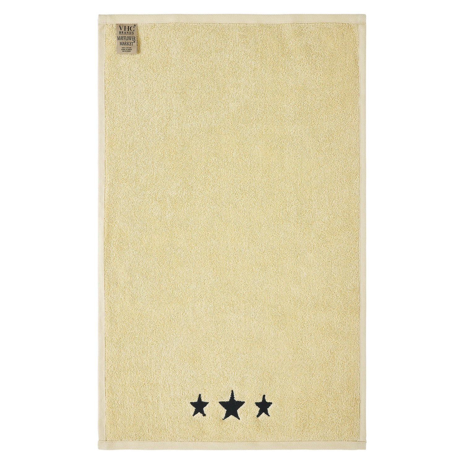 Bring a touch of country charm to your bathroom with the VHC Brands Black Stars Creme Hand Towel Set of 2. Made from thick and absorbent cotton terrycloth, these towels are both soft and functional, perfect for everyday use. The soybean creme hue provides a warm and neutral base, while the embroidered design featuring three five-point stars in a country black shade adds a striking rustic detail. Each towel measures 16x26 inches, making them ideal for use by the sink or on a towel rack. The prairie barn star motif enhances the farmhouse aesthetic, making these towels a great addition to any country-inspired or rustic bathroom. They are also machine washable, ensuring easy care and long-lasting use. The VHC Brands Black Stars Creme Hand Towel Set combines practicality with a timeless farmhouse design. Perfect for adding a cozy, welcoming feel to your home, these decorative towels bring a hint of rustic elegance while serving as a functional necessity in your bathroom.