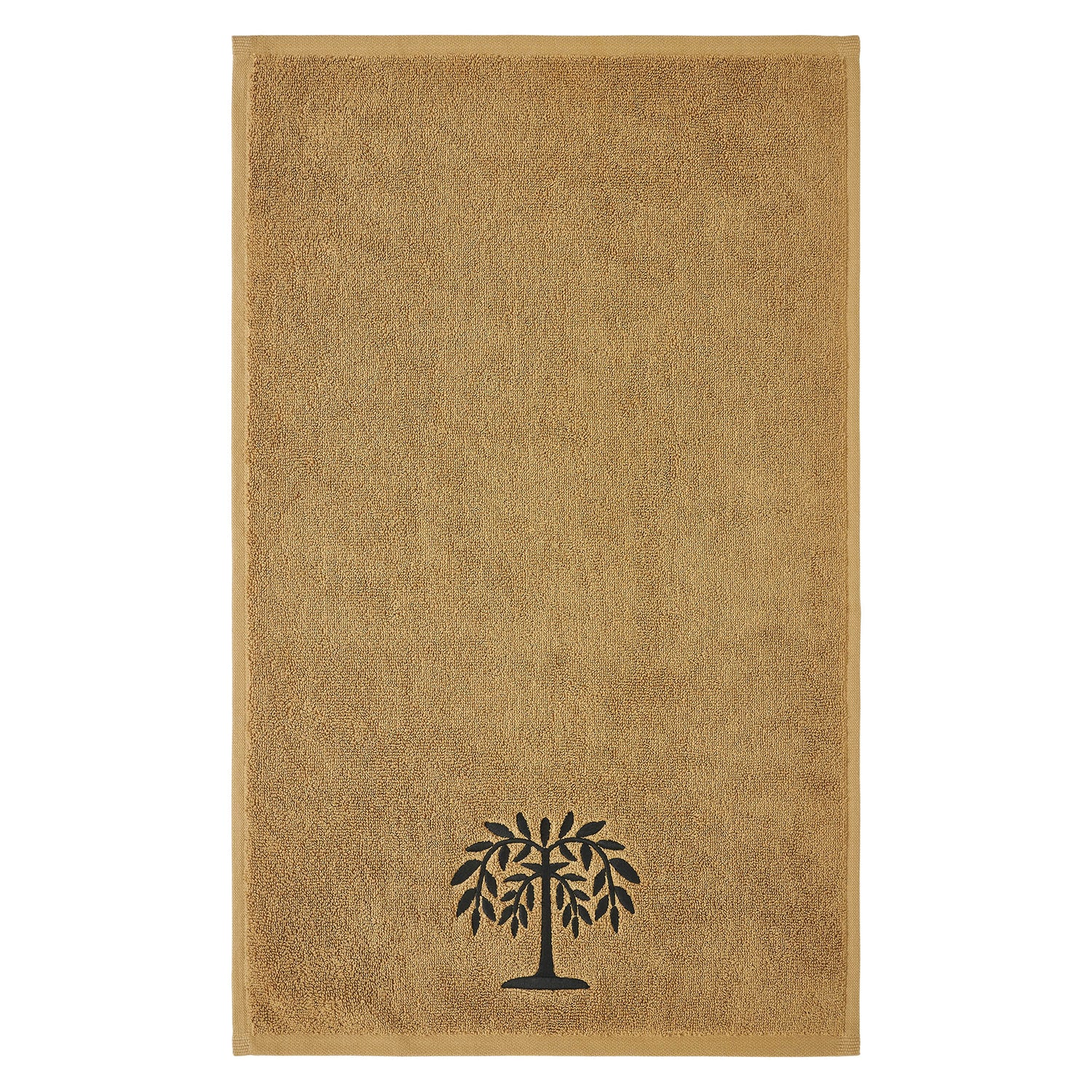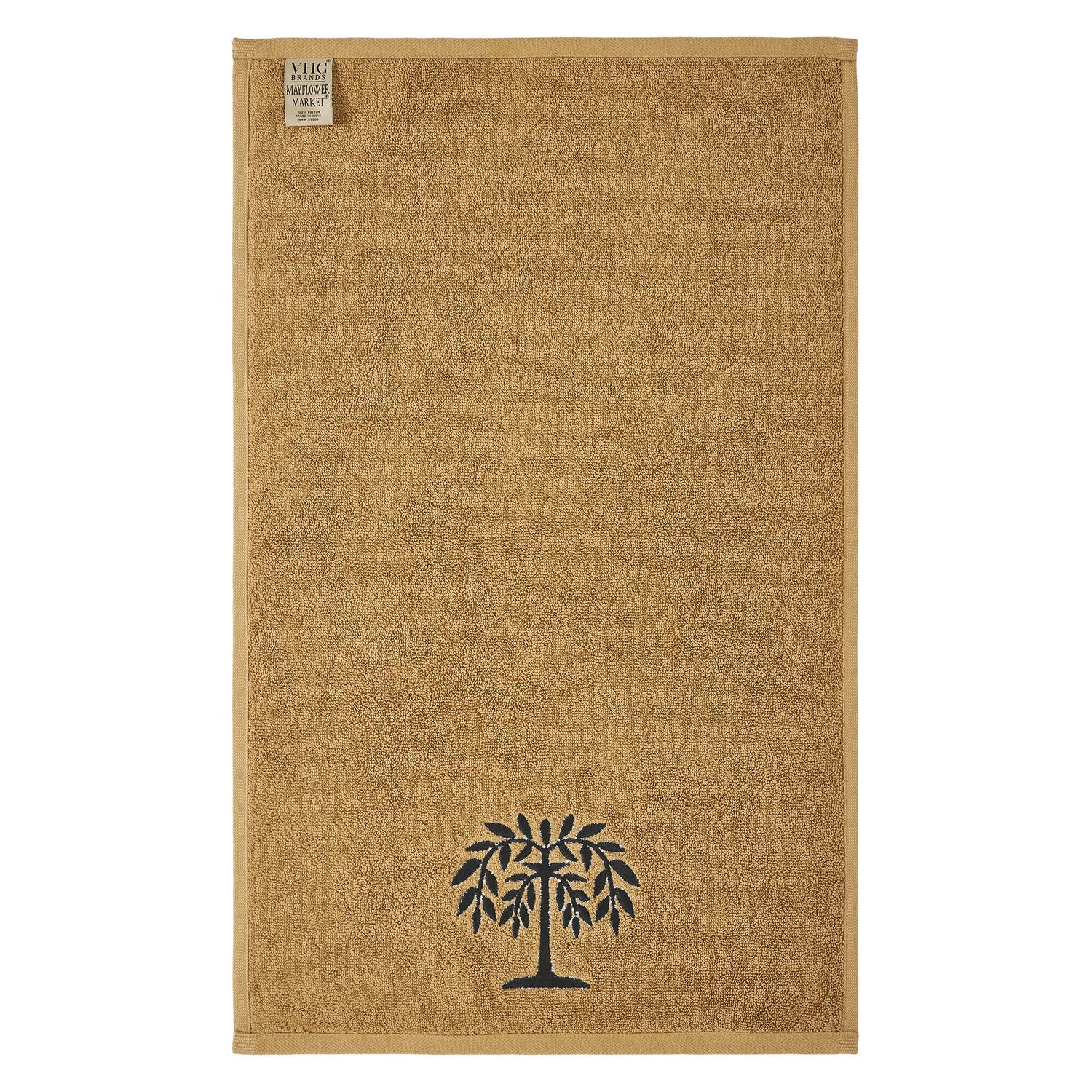 Enhance your bathroom's rustic charm with the VHC Brands Black Willow Tree Tan Hand Towel Set of 2. Made from soft and absorbent cotton terrycloth, these towels are designed for both functionality and style. The neutral doe tan color provides a warm, natural base, while the embroidered black willow tree at the bottom adds a touch of primitive elegance, making these towels a perfect fit for a rustic or country-inspired bathroom. Each towel measures 16x26 inches, offering a practical size for daily use, whether displayed by the sink or hung on a towel bar. The intricate embroidered willow tree design in rustic black brings a timeless and serene feel to your washroom, complementing the simplicity of the solid color background. These towels are machine washable, making them easy to care for while maintaining their quality and softness. The VHC Brands Black Willow Tree Tan Hand Towel Set combines everyday practicality with a classic primitive design. Ideal for adding a cozy, country touch to your bathroom, these decorative towels serve as both functional accessories and stylish decor, making them a perfect addition to any homestead or rustic washroom.