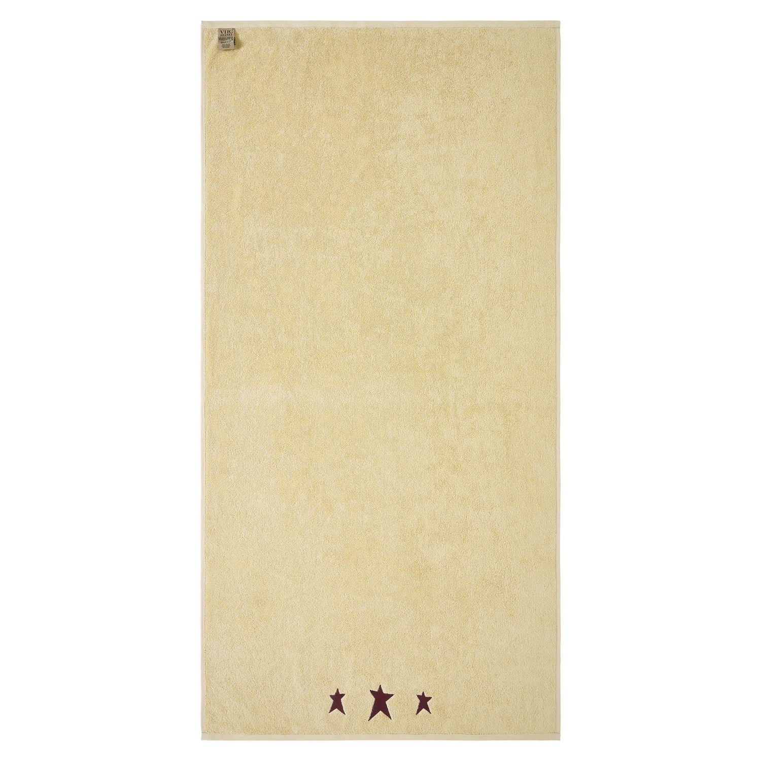 Add a rustic touch to your bathroom with the VHC Brands Burgundy Prim Stars Creme Bath Towel Set of 2. Crafted from plush and absorbent cotton terrycloth, these towels are designed for both comfort and durability, perfect for everyday use. The soft soybean creme hue provides a neutral and soothing backdrop, while the embroidered design at the bottom showcases three primitive stars in a rich burgundy color, creating a charming accent. Each bath towel measures 27x54 inches, offering a generous size that makes them ideal for drying off after a bath or shower. The embroidered primitive stars add a classic touch that enhances the rustic and primitive style of your washroom. These towels are machine washable, ensuring easy care and long-lasting softness, making them a practical and stylish addition to your bathroom. The VHC Brands Burgundy Prim Stars Creme Bath Towel Set combines timeless primitive charm with modern functionality. Whether you're updating a country-inspired washroom or adding a decorative touch to a rustic space, these towels offer both everyday convenience and aesthetic appeal. Perfect for those who appreciate a blend of cozy, primitive style and practicality.