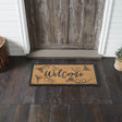 Introducing the VHC Brands Buzzy Bees Coir Welcome Mat, an inviting addition to your home's entryway that beautifully blends functionality with rustic charm. This 17x36 inch welcome mat is crafted from sturdy tan coir fibers, known for their durability and natural ability to scrape shoe soles clean. The mat features charming charcoal grey Welcome lettering, stenciled alongside playful honey bees buzzing in a delightful pattern. The design not only offers a warm greeting but also adds a touch of whimsical spring decor to your doorstep. Enhanced with a PVC vinyl backing, the mat ensures slip-resistance and stability underfoot. Designed for both indoor and outdoor use, the Buzzy Bees Coir Welcome Mat stands up to the elements while maintaining its attractive appearance. The natural tan and charcoal grey colors provide a neutral base that complements a variety of door colors and home styles, from primitive to modern. Ideal for use at any entrance or front door, it serves as a practical yet decorative element that captures the essence of spring with its rustic and welcoming honey bee motif. Maintaining this coir mat is effortless, ensuring long-lasting use and retention of its vibrant design. To clean, simply shake or vacuum the mat to remove surface dirt. For best results and to prolong the bright colors, it is recommended to keep the doormat in a sheltered entryway, protecting it from direct rain and prolonged sun exposure. With its durable construction and charming design, the VHC Brands Buzzy Bees Coir Welcome Mat is a perfect choice for adding a functional and festive touch to your home's entry.