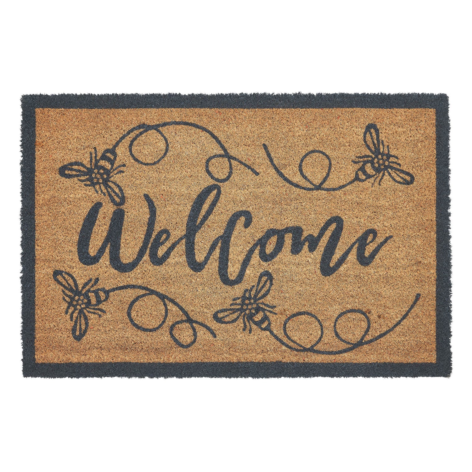 - Inviting Aesthetic: Features charcoal grey Welcome lettering on a natural tan coir base, with charming honey bees stenciled around, creating a friendly and warm entry for visitors.
