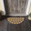 Welcome guests with timeless elegance using the VHC Brands Charleston Mosaic Black Grey Coir Welcome Rug Half Circle 16.5x33. This beautifully crafted door mat features an intricate mosaic pattern in charcoal grey and deep black, set against a natural tan background. The eye-catching design brings a sophisticated yet rustic touch to your entryway, making it perfect for homes with a primitive or rustic decor style. Made from durable coir, this rug is designed to trap dirt and debris, keeping your entryway clean while adding a decorative accent. The half-circle shape fits neatly by your doorway, and the non-slip PVC backing ensures the mat stays securely in place, offering stability and safety. The mosaic pattern, inspired by Southern street designs, adds an artistic flair to your home's entrance. For easy maintenance, simply shake or vacuum the rug to remove surface dirt. To preserve its bright colors and extend its life, keep the VHC Brands Charleston Mosaic Black Grey Coir Welcome Rug in a sheltered entryway. Combining intricate design with practical functionality, this rug is a perfect addition to any home seeking a blend of rustic style and everyday utility.