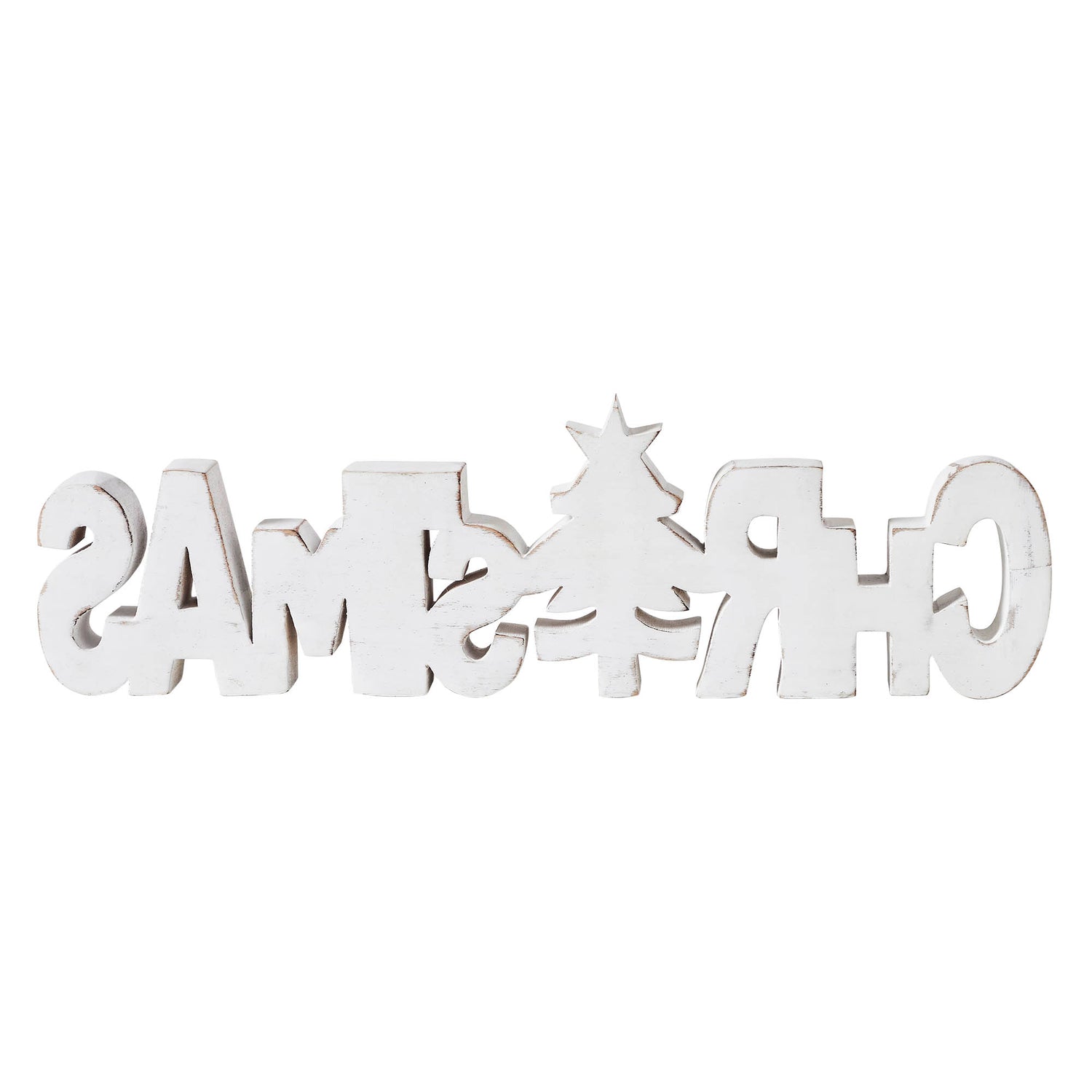 - Crafted from tropical wood, this sign features a charming cutout of the word "Christmas" accompanied by a festive tree motif, adding a rustic touch to your tabletops and shelves.