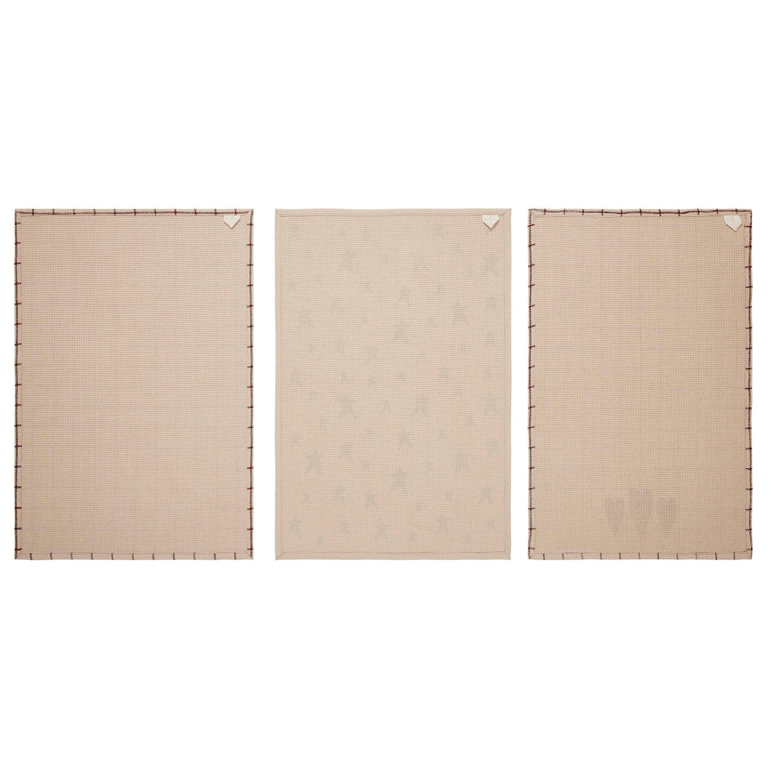 Elevate your kitchen decor with the VHC Brands Connell Collection Cotton Kitchen Towel Set. This set of three tea towels features a charming primitive star design, adding a touch of country farmhouse style to your space. Crafted from high-quality waffle-textured cotton, these towels are both decorative and functional, making them a versatile addition to your kitchen. Measuring a generous 28x19 inches each, these tea towels provide ample coverage for various kitchen tasks, from drying dishes to adding a decorative element to your space. The primitive-inspired design with its rustic star motif complements modern and farmhouse aesthetics alike, making these towels suitable for all occasions, whether it's fall, Easter, or everyday use. Crafters will appreciate these blank canvas tea towels for their DIY projects, making them an ideal choice for creative endeavors. Crafted from durable cotton, these towels are built to last and are easy to care for, ensuring they remain a staple in your kitchen for years to come. Whether you're a crafting enthusiast looking for a blank canvas or simply seeking to enhance your kitchen decor, the VHC Brands Connell Collection Cotton Kitchen Towel Set offers both style and functionality with its rustic charm and high-quality construction.