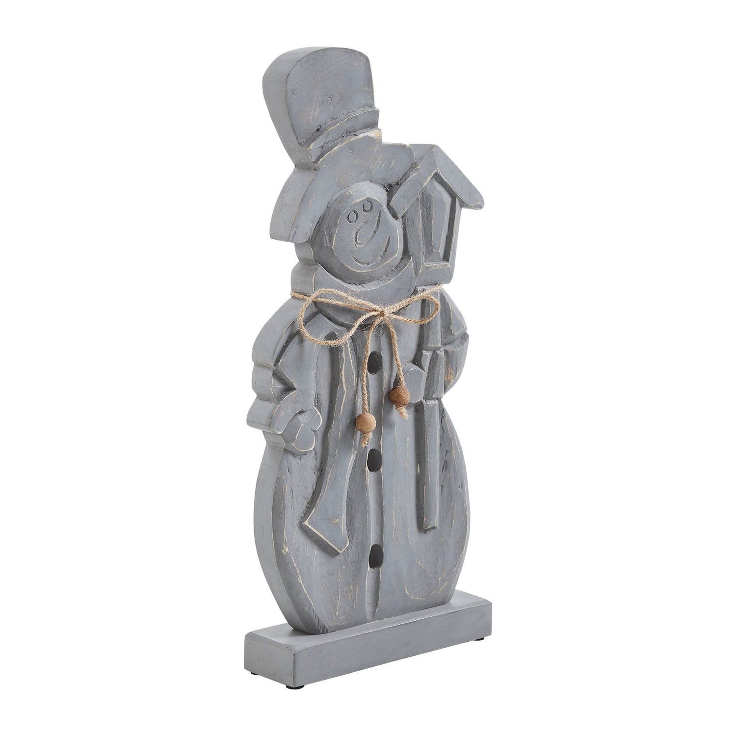 - Traditional Winter Grey Wooden Design: Features a carved snowman with a happy expression, wearing a hat and scarf in winter grey, adding a rustic, traditional touch to your Christmas and winter decor.