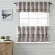 Add romantic elegance to your windows with the VHC Brands Florette 3 PC Curtain Set in Light Taupe. This ruffled set includes one 16x72-inch valance and two 24x36-inch tiers, all crafted from 100% cotton. The soft taupe tones and delicate ruffles create a timeless farmhouse look full of warmth and charm.