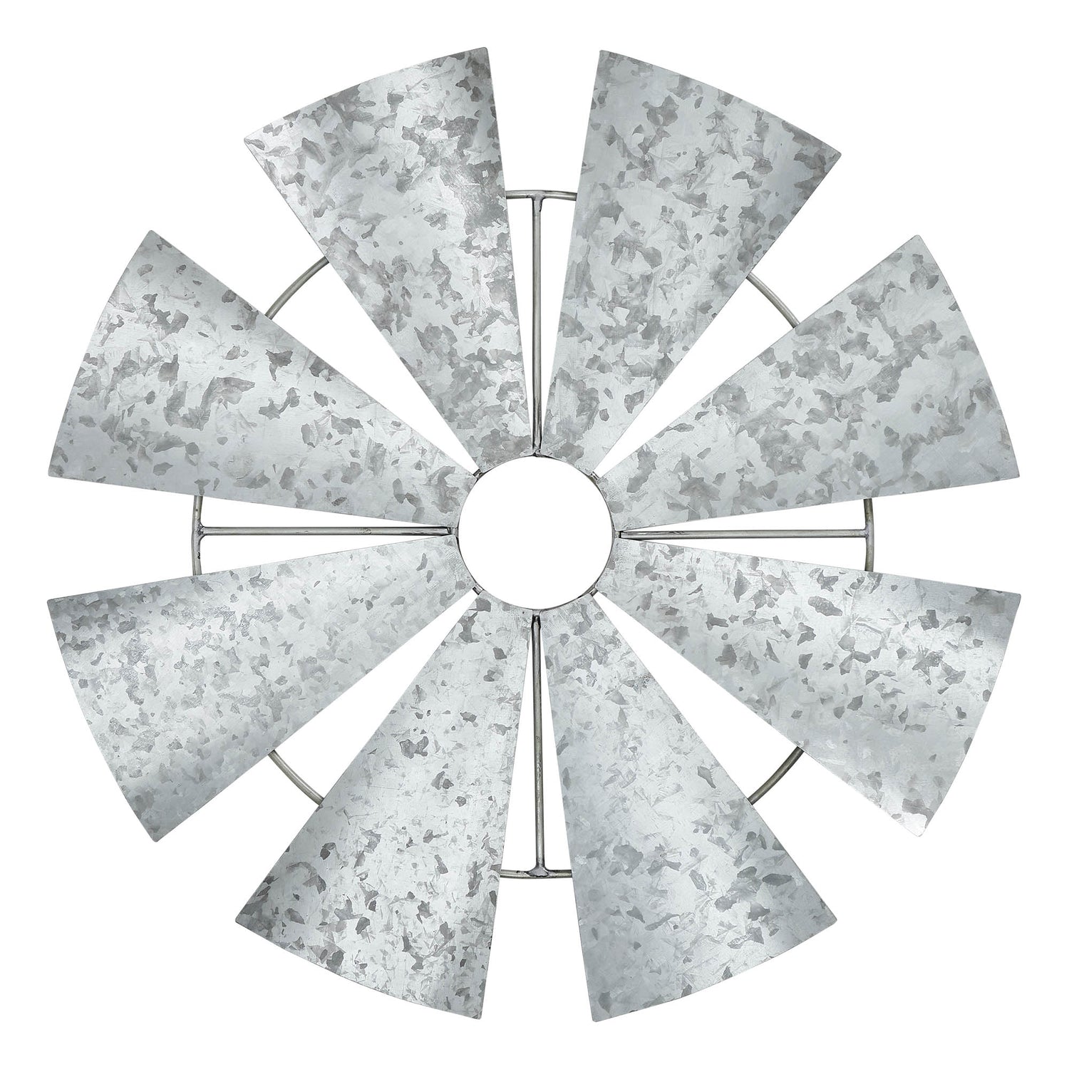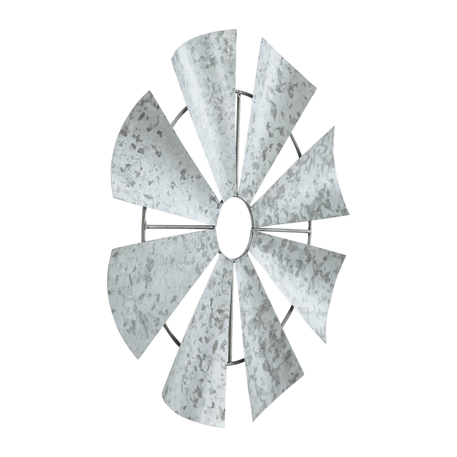 - Rustic Windmill Design: Features 8 curved windmill blades in galvanized grey metal, arranged to form a windmill shape that adds a charming, rustic farmhouse touch to your decor.
