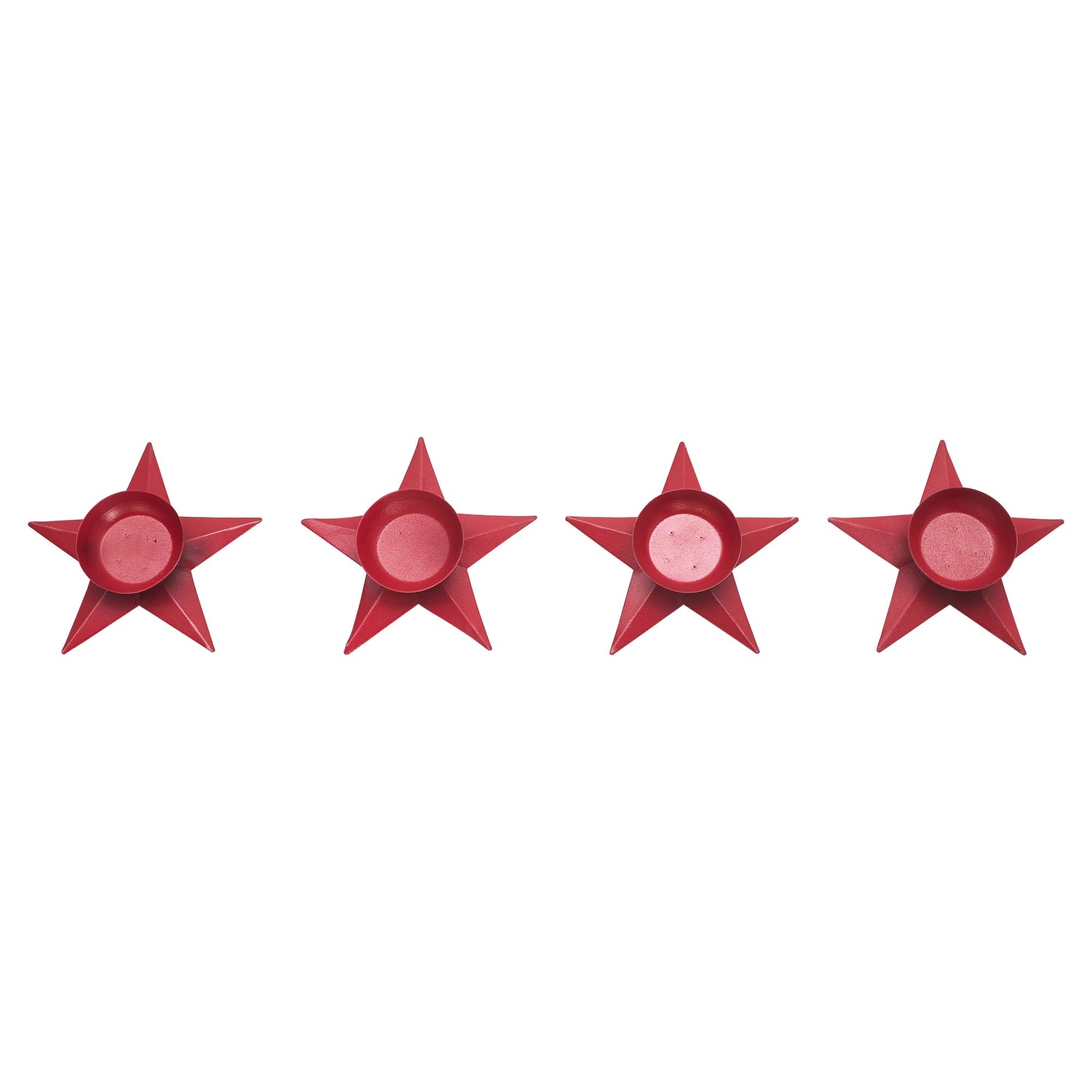 - Elevate your home decor with this set of 4 Metal Tealight Holders, featuring a charming star-shaped design in a rustic barn red color.