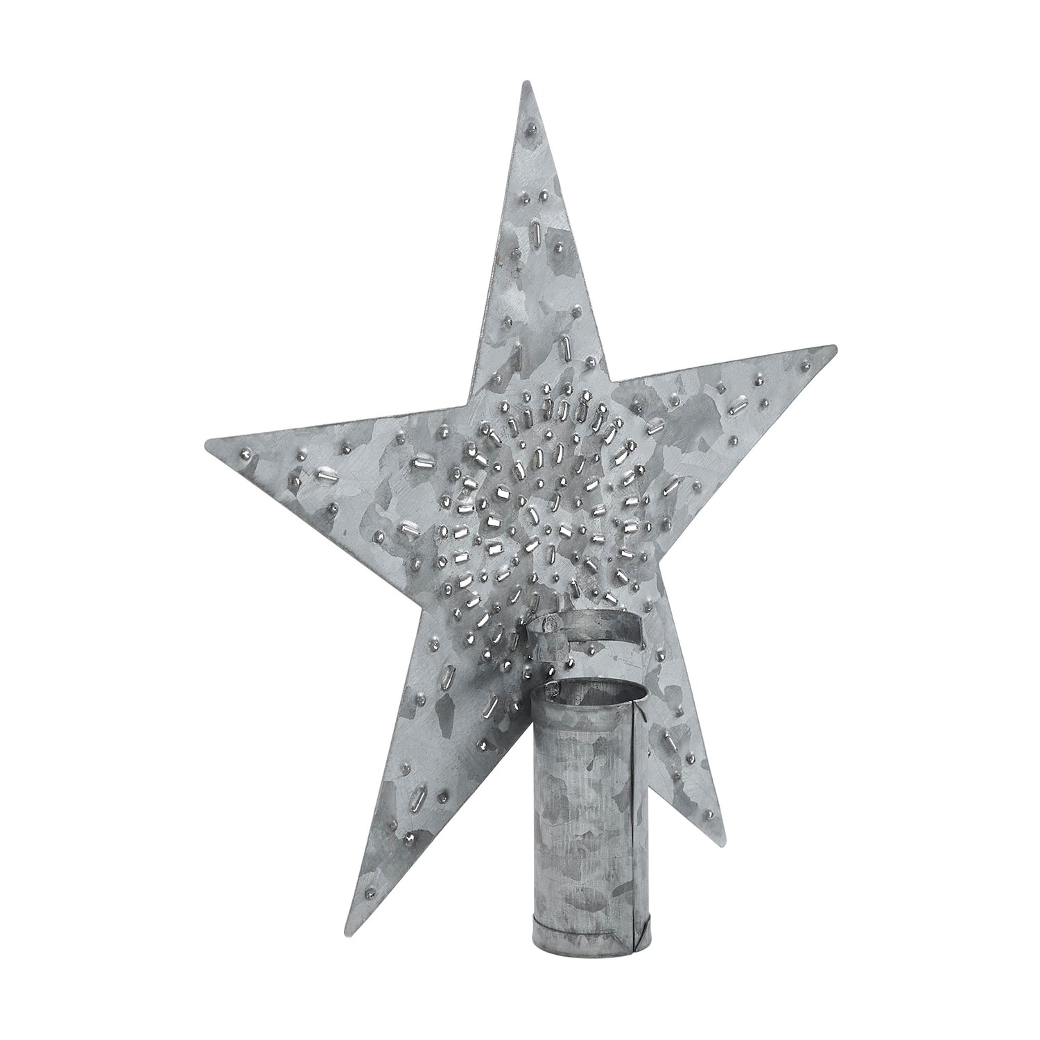 Top off your holiday tree with rustic charm using the VHC Brands Punched Metal Star Christmas Tree Topper. Measuring 6.75x6.75 inches, this barn red five-point star features a striking starburst design punched through the metal, creating a beautiful pattern that catches the light and adds festive sparkle. Its classic shape and warm color make it a perfect accent for primitive rustic, farmhouse, or traditional Christmas decor. Crafted from durable metal, this tree topper is mounted on a sturdy holder designed to sit securely atop your Christmas tree. The barn red finish adds a cozy, vintage-inspired touch, enhancing the festive atmosphere in your home. Its lightweight construction ensures easy placement while providing a stable and elegant finishing touch to your holiday centerpiece. Ideal for use throughout your home-in the bathroom, bedroom, dining room, entryway, kitchen, or living room-this Punched Metal Star Christmas Tree Topper adds warmth and festive spirit to any space. Maintenance is simple with a quick wipe using a soft cloth to preserve its vibrant finish year after year. This charming piece is a timeless addition to complete your Christmas tree with style and grace.