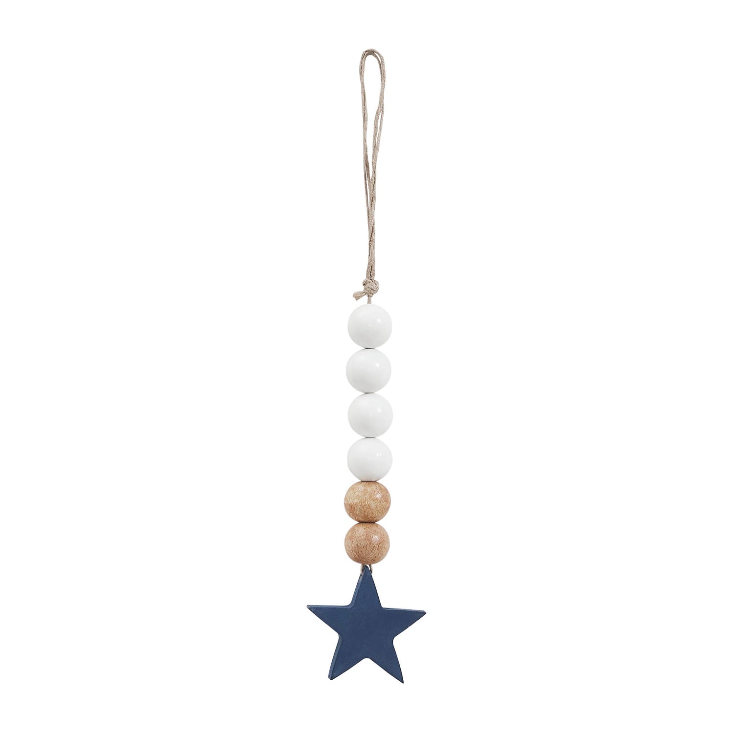 - Patriotic Star & Bead Design: Features a hanging strand of 4 white and 2 natural color wood beads with a painted 5-point navy blue star, creating a festive and patriotic ornament for your home.