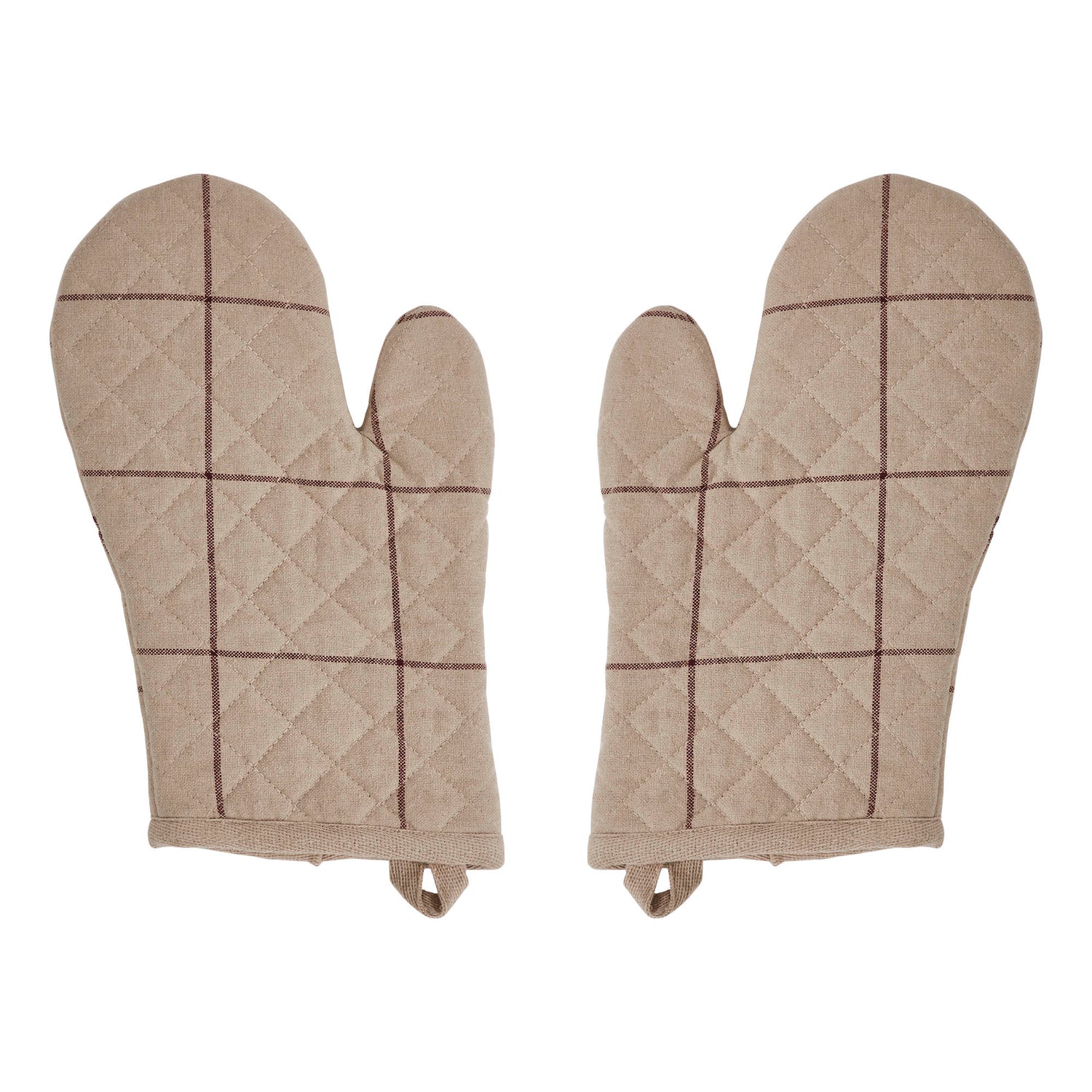 Upgrade your country or primitive kitchen with the VHC Brands Cotton Oven Mitt Set of 2 from the Connell Collection. These 12.5x8-inch oven mitts are designed for heavy-duty use, ensuring your hands are protected when handling hot cookware. Crafted with high-quality cotton, these mitts feature a quilted windowpane design in a rich burgundy hue, adding a rustic touch to your culinary space. The textured grip ensures excellent control, making them ideal for baking, cooking, or grilling. This set of oven mitts is perfect for both men and women who appreciate style and functionality in the kitchen. These heat-resistant mitts are your essential cooking companions, whether you're baking, cooking, or grilling. Add a touch of timeless charm and ensure your safety while cooking with this durable and stylish Connell Collection.