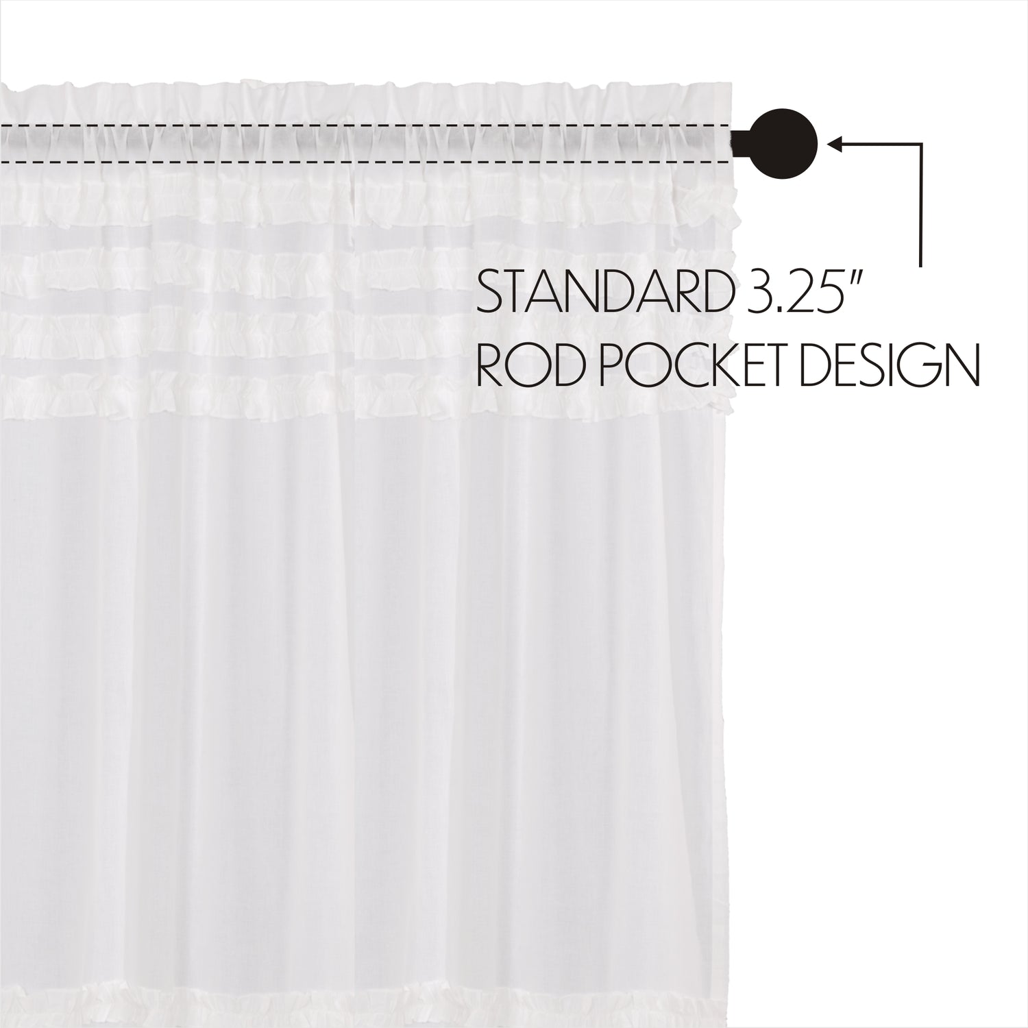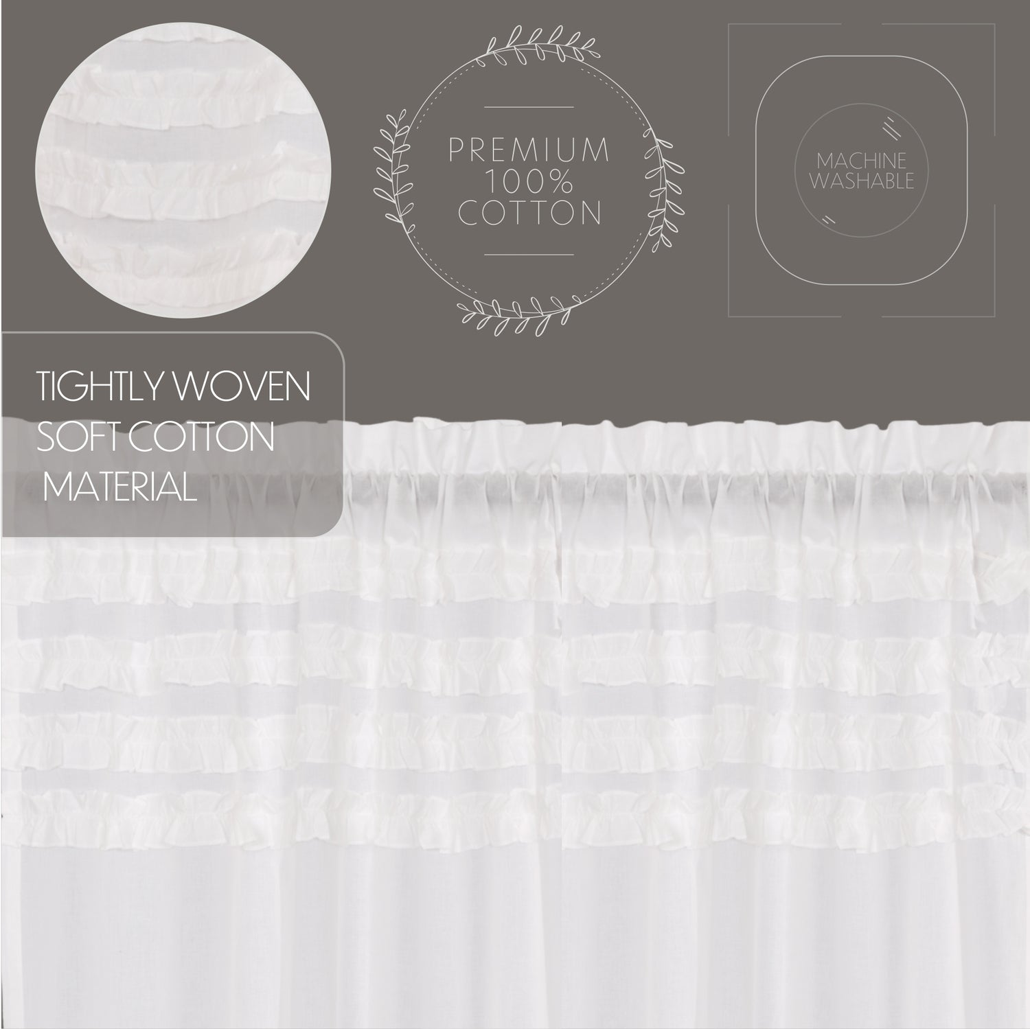 Elevate your windows with the VHC Brands White Ruffled Sheer Petticoat 4-Piece Curtain Set. Crafted from 100% soft white cotton, this romantic set includes two 36x16-inch swags and two 24x36-inch tiers with charming ruffled detailing, perfect for adding airy elegance and vintage farmhouse style.