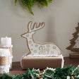 - Cookie Cutout Reindeer Design: Features a delightful cookie cutout reindeer figurine with relief cut snowflakes and Joy across the middle, adding a rustic, festive touch to your Christmas decor.